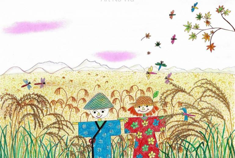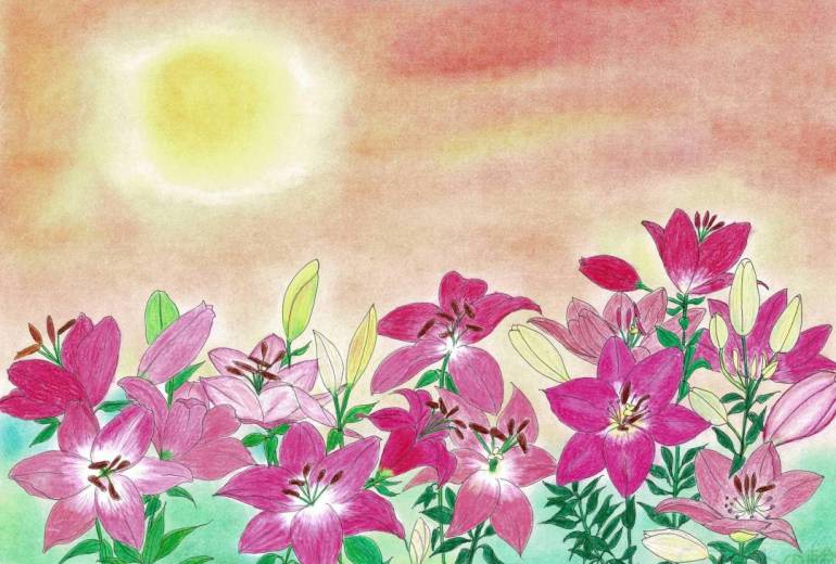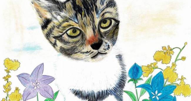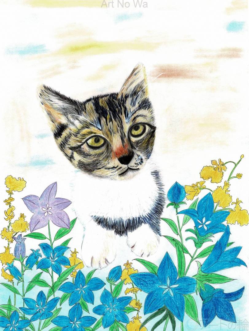 猫とりんどうの花を描きました。猫の顔が難しかったです。