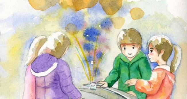 子供が水飲び場で井戸端会議