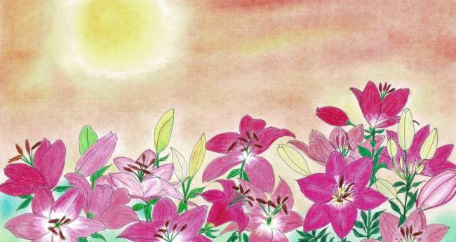 現実,屋外,自然,夏,赤,オレンジ,黄色,緑,紫,植物,風景,明るい,たのしい,かわいい,わくわく,どきどき