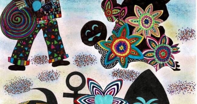 神川ビーチにあった影絵を描きました。細かいところまできれいに描けました。カラフルな色はボールペンを使用しました。