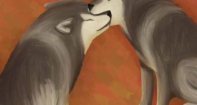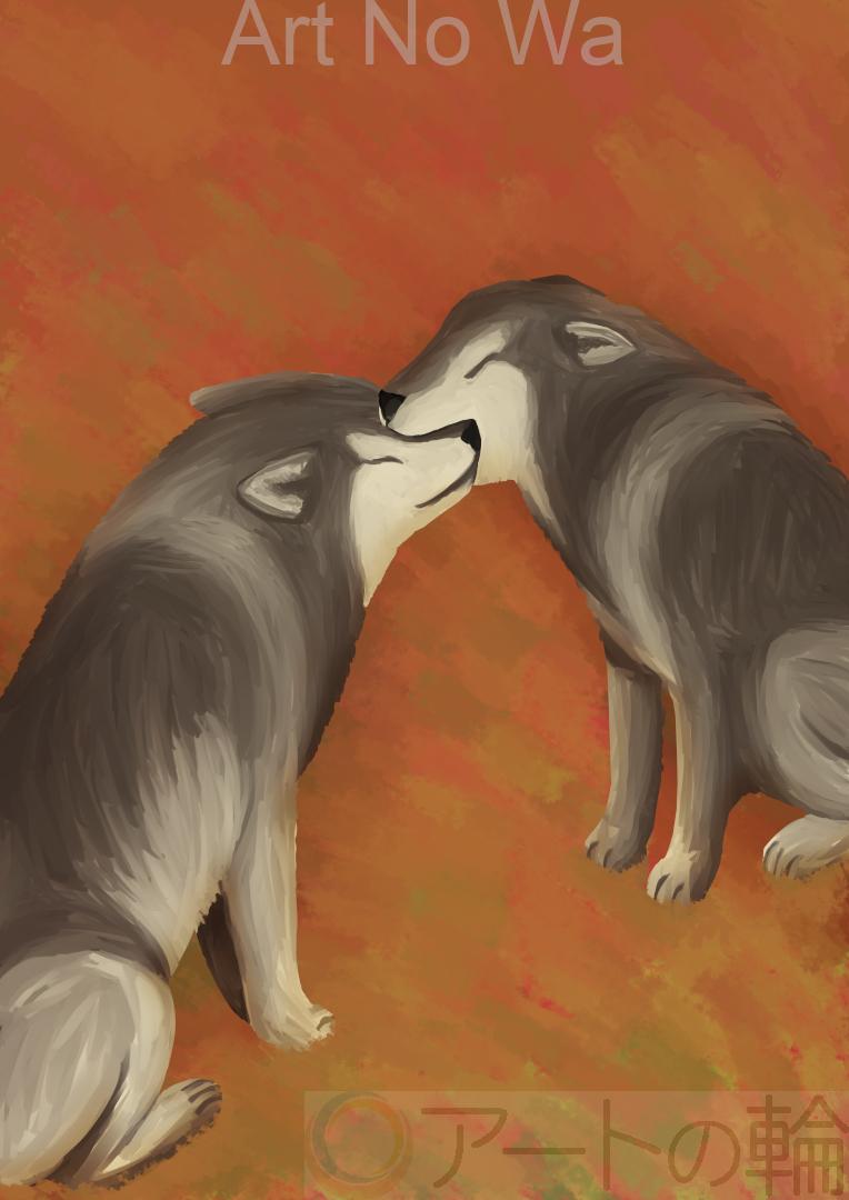 油彩風です。狼の甘噛みは尊い愛情表現です。