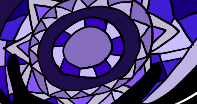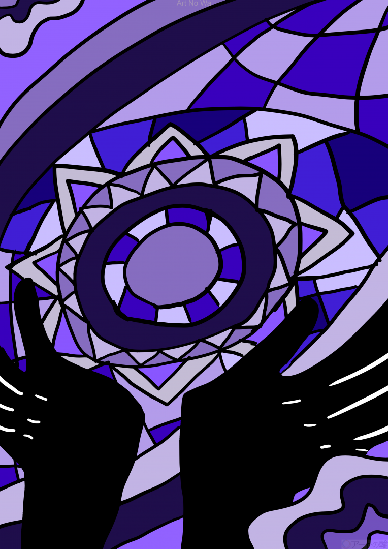 暗い夜を照らしている不思議な太陽を描いてみました。