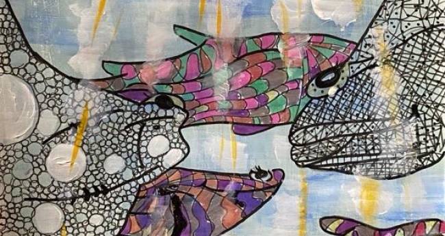 生命の源 色々な魚が泳ぐ様が未来に向かって進むように