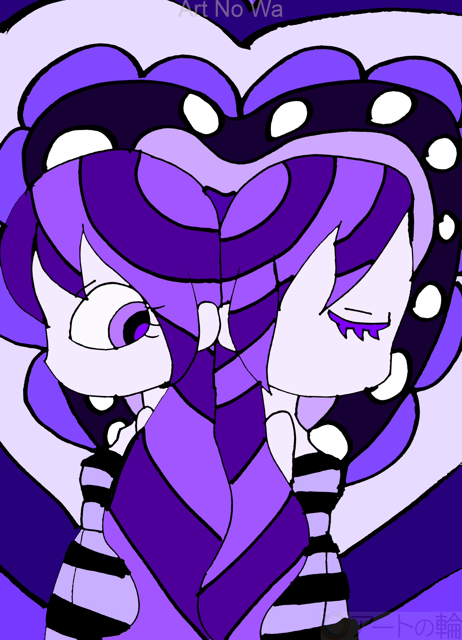 以心伝心で背中合わせしながら心を一つにしている双子の少女を描いてみました。