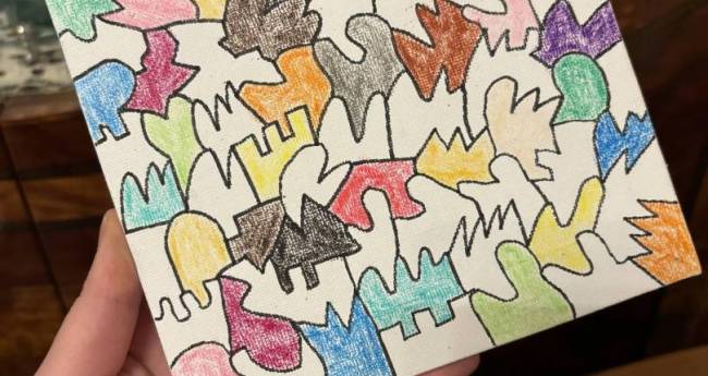 久しぶりのキャンバスに20色のクレヨン。いつもより線が早く描けて、なんかフワフワのなんだろう…