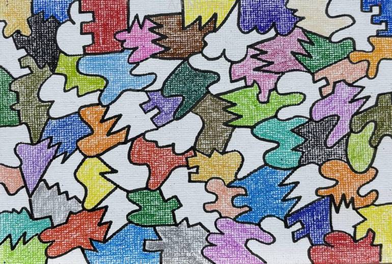 小さい頃からこのような絵を描いています。 自分の言葉にならない想いを自由に線といろんな色で誰かに伝えようと表現してきました。 元々自分が好きで絵を描いていました…
