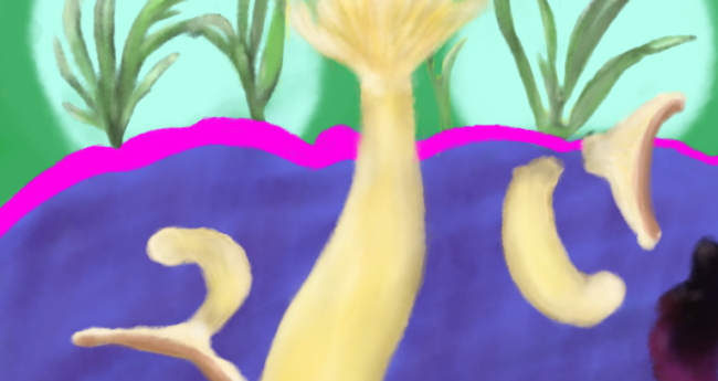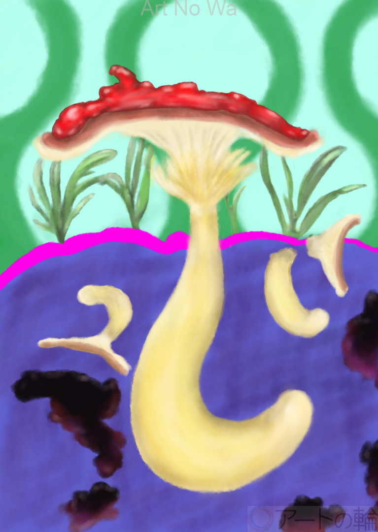 非現実,自然,山,過去,現在,未来,赤,黄色,緑,青,紫,白,黒,植物,想像上の生き物,暗い,どきどき