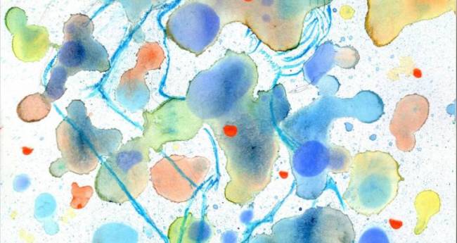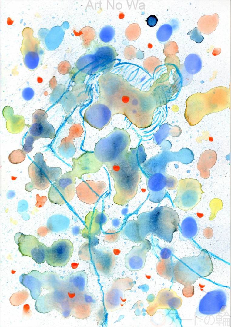 ダイヤの輝き・価値・私の宝物・未来につながる価値のイメージと、夏のイメージの抽象画の中に人物を描き入れました。水の滲みを活かしやすい、透明水彩絵の具で水を多めに使い描いていきました。