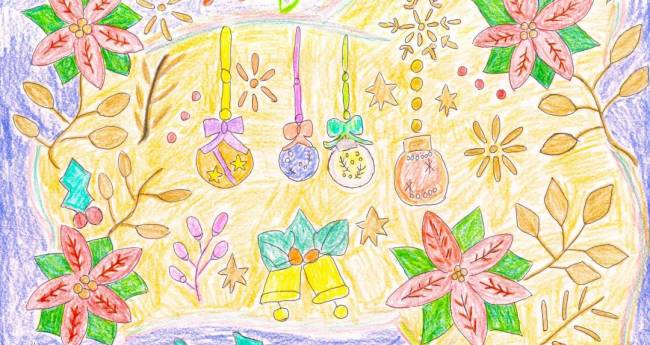 今回は、ポインセチアという植物をモチーフにクリスマス飾りに星やベル等をイラストにして描いてみました。