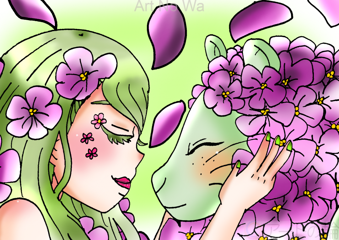 オキザリスの花言葉の「輝く心」をモチーフにしながら描いてみました。