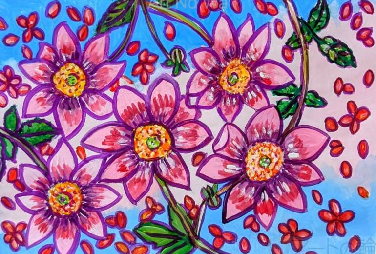 小学3年生の頃学校の先生が読書感想画のコンクールをすすめて参加したら入賞したきっかけで母のすすめもあり絵を描くのが好きになりました。特に花が好きで紙に大好きな花…