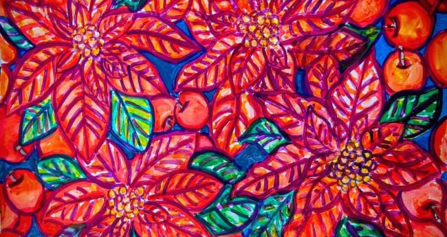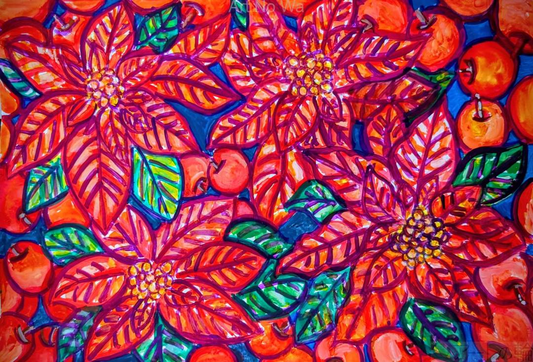 ポインセチアと姫リンゴ