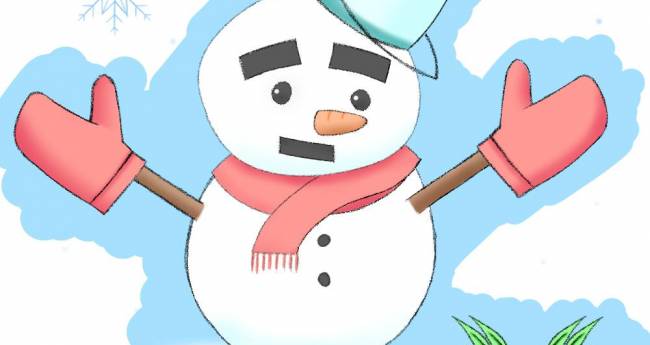 雪うさぎを見守る優しい雪だるまをイメージして描きました