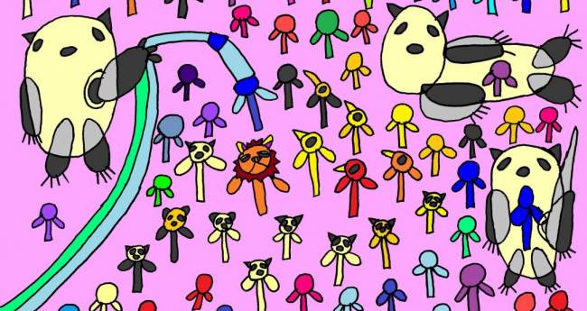 しろくまは子どもの成長のために水をあげてます。その水をたくさんあびて子どもたちは大きくなっていきます。