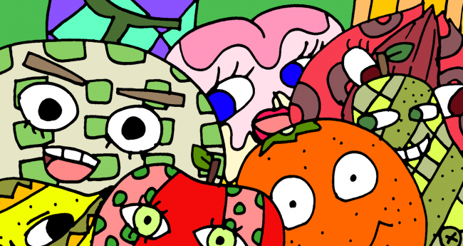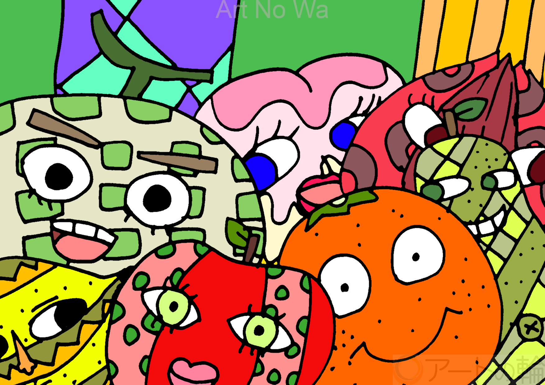 それぞれの性格や個性ある顔をしている果物を描いてみました。