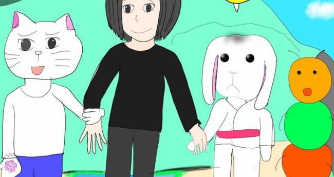 現実,屋外,自然,空,現在,未来,人物,動物,想像上の生き物,男性,大人,明るい,たのしい,かわいい