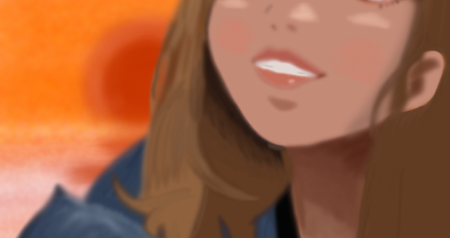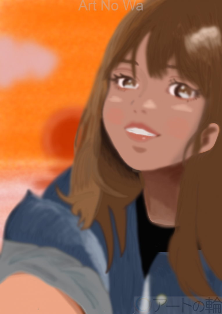 夕陽を背に自撮りをする人