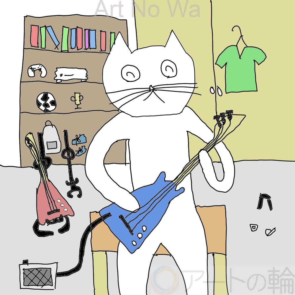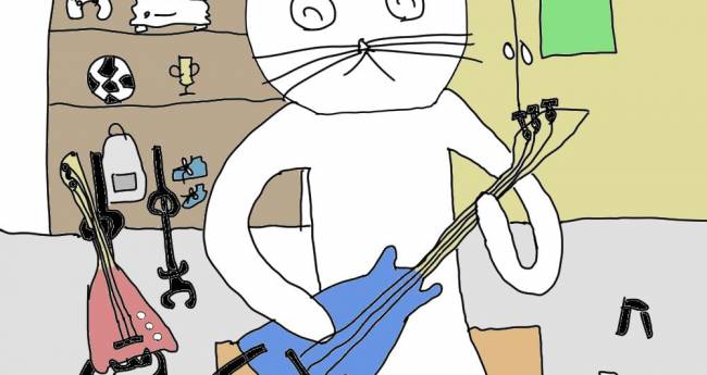 ゆるくギターを弾いているネコを描いてみました。