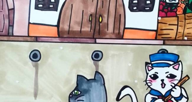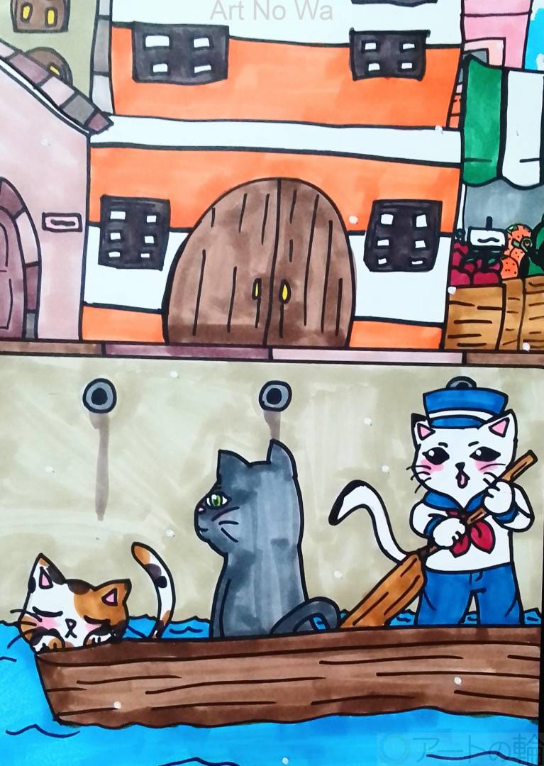 イタリアのヴェネチアをボートに乗って旅をしている猫を描いてみました。