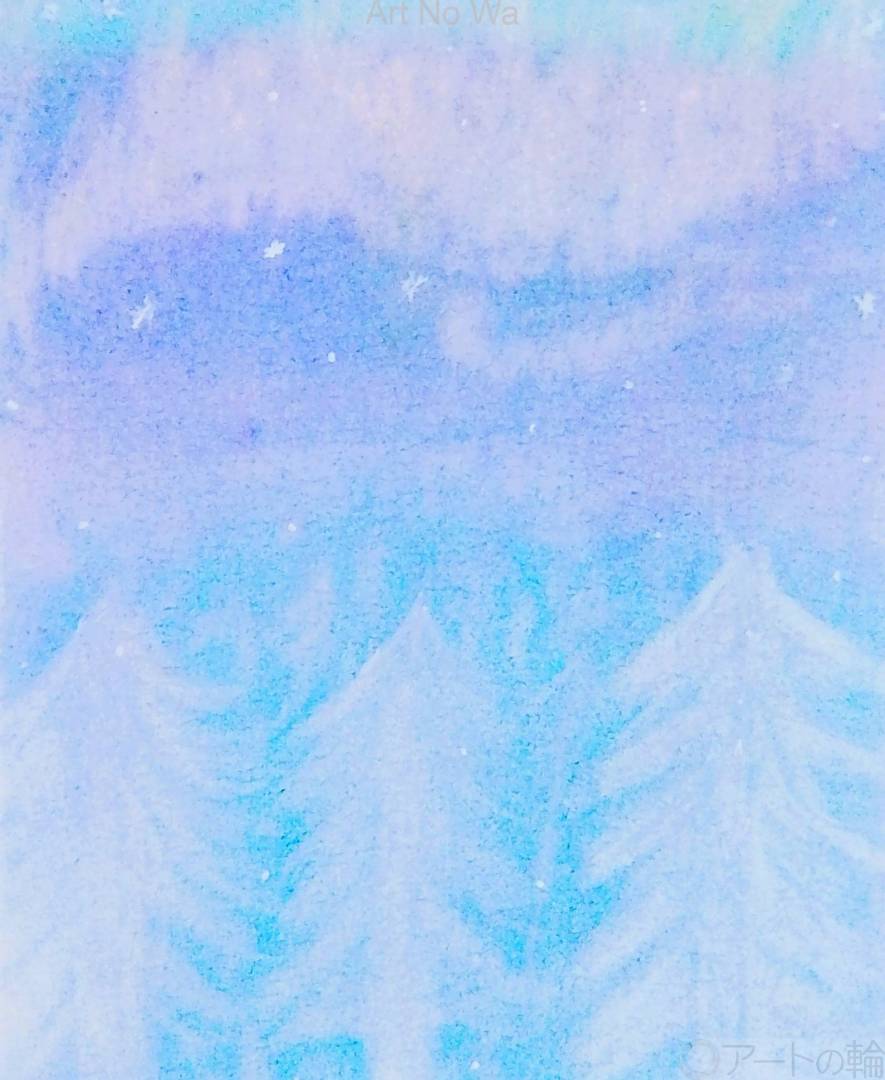 静かな雪の夜 動物たちの眠る森にオーロラが降ります