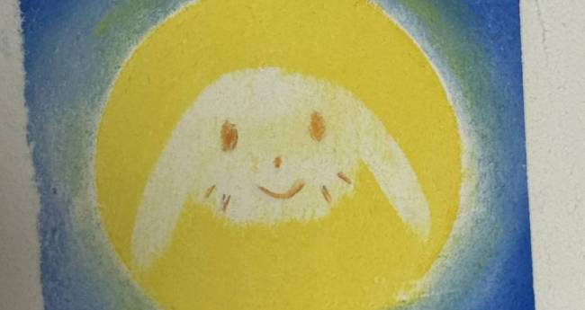 お月様の中にウサギのペットのアキちゃんを描いてみました。