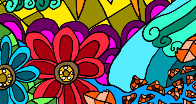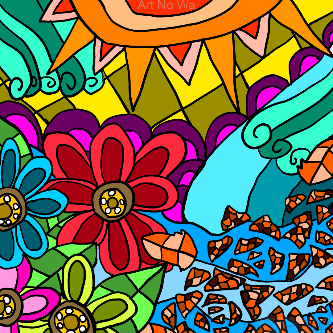 太陽や風や水が植物を成長させるように栄養をあげている様子を表現して描いてみました。