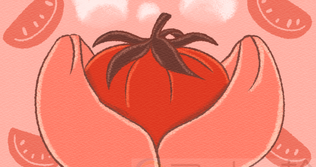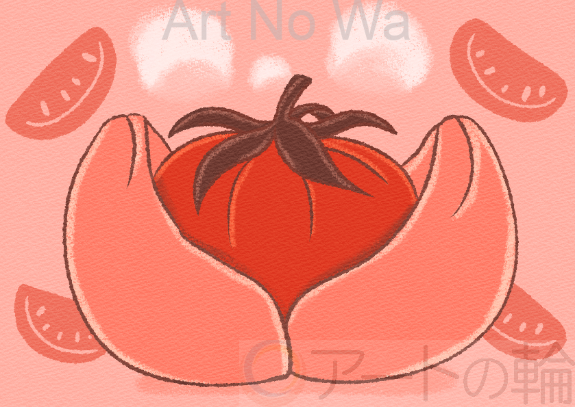 肉まんの生地の中に、出来立てほかほかのトマトが出たきた様子です。