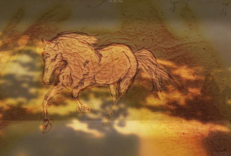 目に入りました。光があり馬が力強く颯爽と駆けています。目に焼き付けました。
