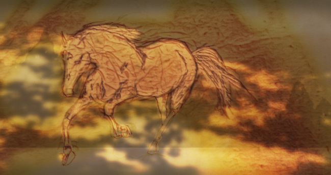 目に入りました。光があり馬が力強く颯爽と駆けています。目に焼き付けました。