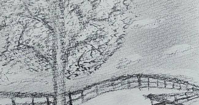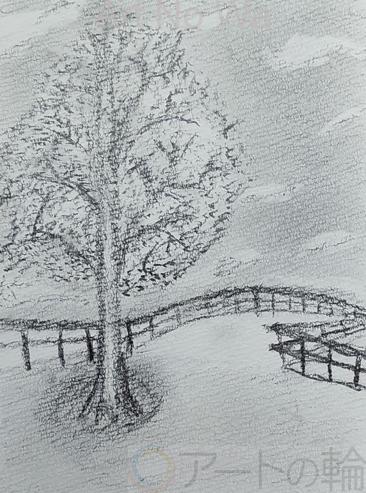 鉛筆で想像上の風景を描きました