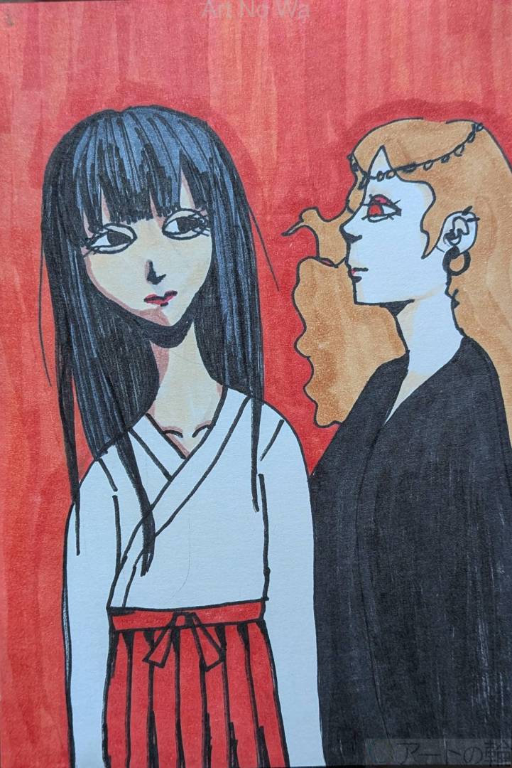 ただならぬ雰囲気の巫女と魔女を描きました。