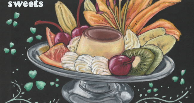 Chalkart作品をおもに描き、オイルパステルを使った。看板メニューボードの制作をおこなっています。 ガッシュ(不透明水彩絵の具)と筆で明朝体やゴシック体のフ…