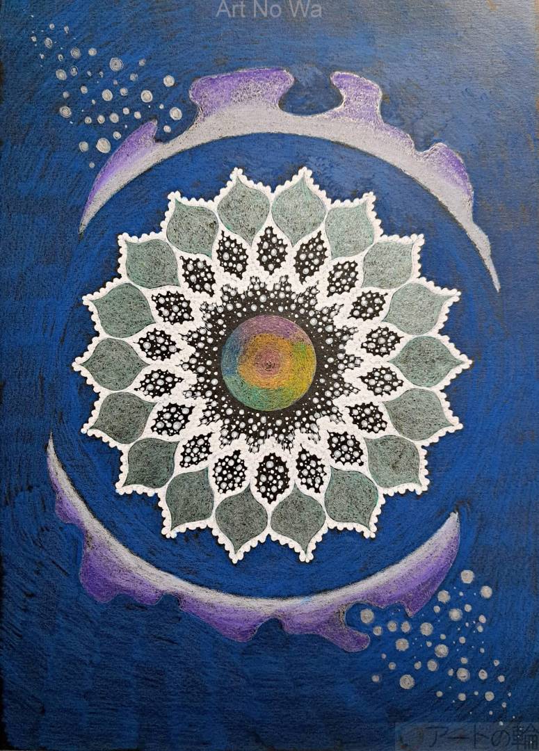 冬は終わりではなく、内側で力を蓄える季節だと考えました。 一見静かで冷たい世界の中心に置いた球体は、次の変化を待つ「種」を象徴しています。 外側に広がる規則的な模様は、知恵や秩序、積み重ねられてきた思考の層。 それらは止まっているように見えて、確実に未来へ向かう準備を続けています。 光と影、静と動、その均衡の中で世界は少しずつ前に進む。 挑戦とは、外へ踏み出す前に内側で育てるもの。 冬の奥深くに宿る、始まりの力を描きました。