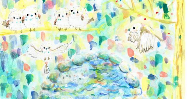 幸せを運んでくれるシマエナガを描きました。シマエナガたちもしあわせかな?この絵を見てくださった方々も、幸せになってもらえたらいいな~。