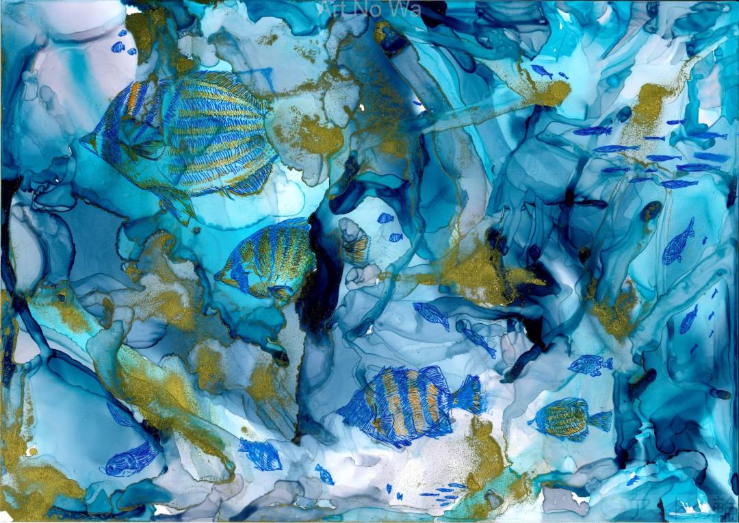 初めてアルコールインクアートに挑戦してみました。