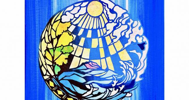 夏、未来を信じ思うままに振る舞う、価値ある心をイメージとして表現した作品。画材:リキテックス、上質紙、和紙、やまと糊