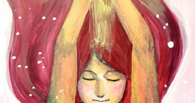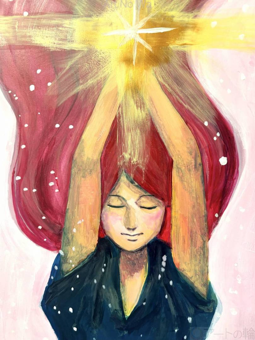 未来へ輝く春への祈りを描きました。新しいことが始まる春、少女は祈りあげる。