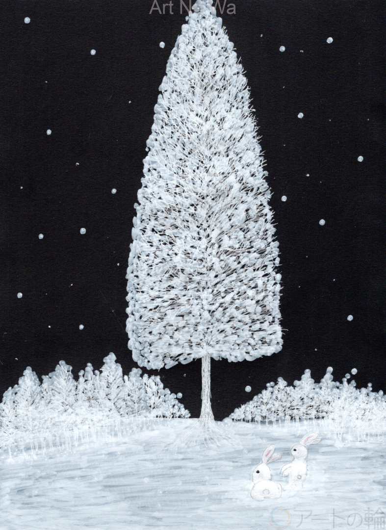 1番大きい木にクリスマスの飾り付けを考えてるうさぎさん達を想像して描きました。