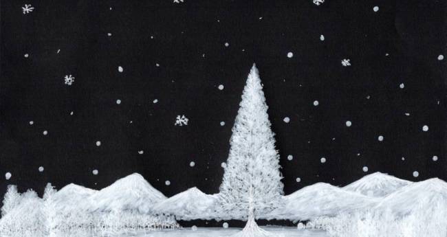 冬の景色を 黒と白で描きました。