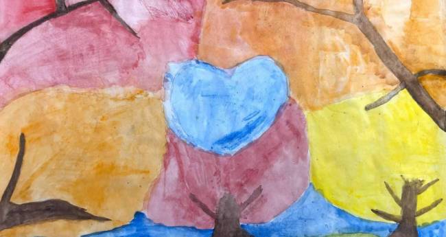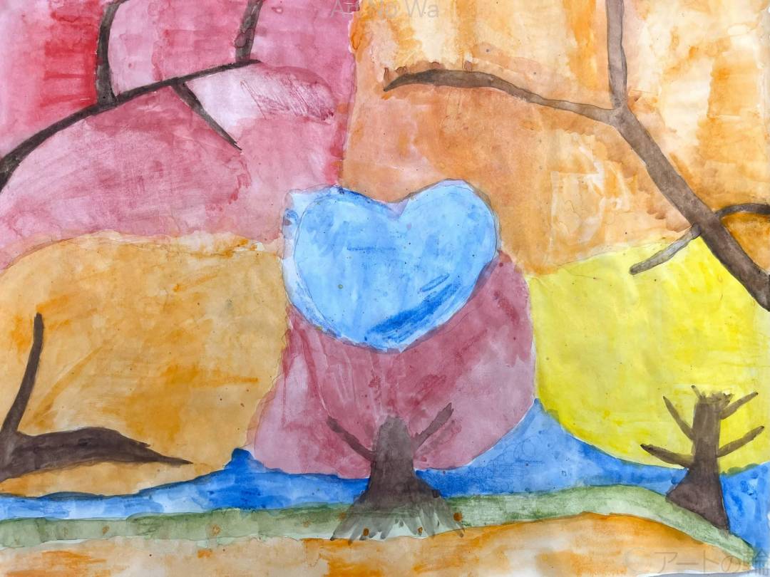 水彩画風の感じで色を塗りました。色が少し重なるように塗ることを頑張りました。