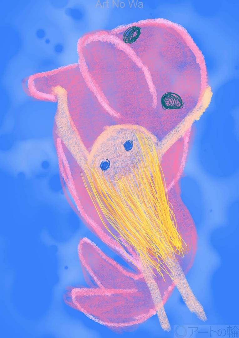 現実,非現実,海,川,現在,未来,夏,8月,水色,動物,想像上の生き物,明るい,たのしい,かわいい,わくわく,びっくり,2D