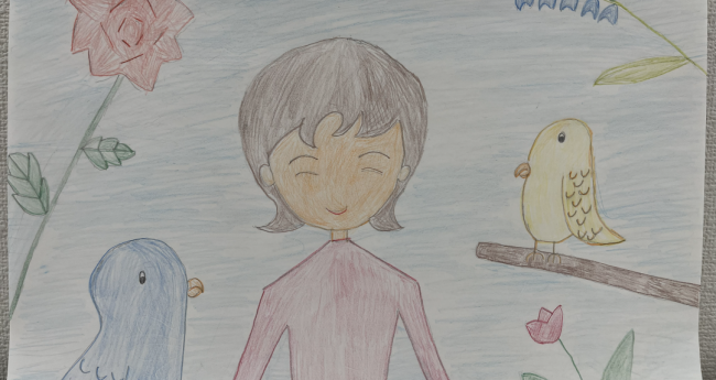 現実,屋外,自然,赤,水色,人物,動物,女性,明るい,かわいい