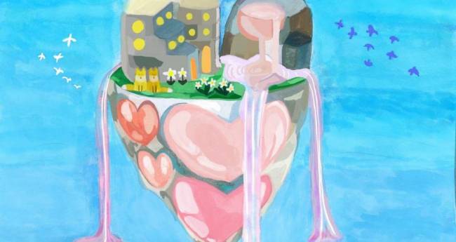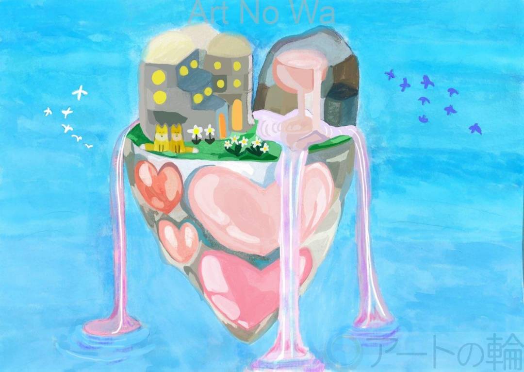 空へ浮かぶ大地には優しい命と愛が育まれています。タロットカードのカップと連想させ水をテーマにしました。