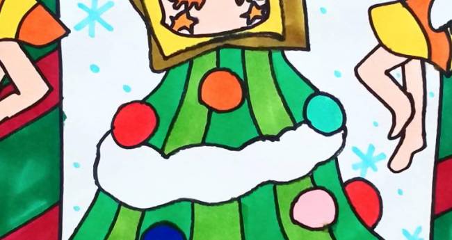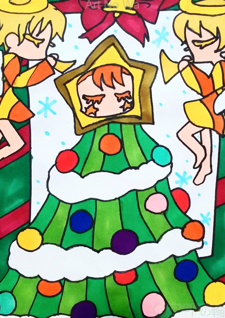 クリスマスツリーを明るく照らしている星を擬人化させながら描いてみました。