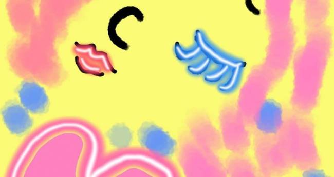 非現実,赤,黄色,水色,青,白,黒,女性,明るい,かわいい