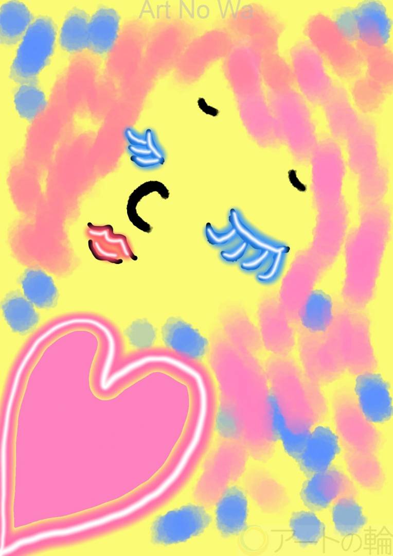 愛とは…と考えた時、淡い色合いが浮かびました。なので、淡い色の中に顔を描いて、愛を表現してみました。