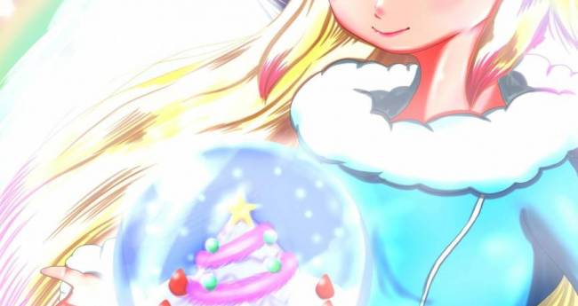 冬,クリスマス,季節の行事,黄色,水色,白,植物,静物,風景,星,女性,明るい,かわいい,どきどき,2D