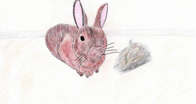 トリミング後のうさちゃんを描きました。大きな毛玉ができました。