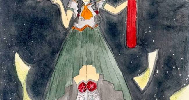 非現実,屋外,自然,冬,1月,12月,赤,緑,黒,人物,女性,子供,明るい,かわいい,わくわく