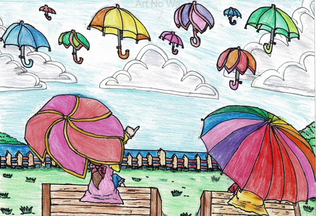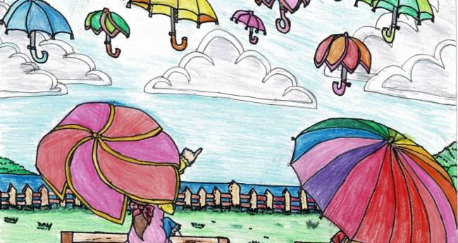 青空と色々な傘を描きました。